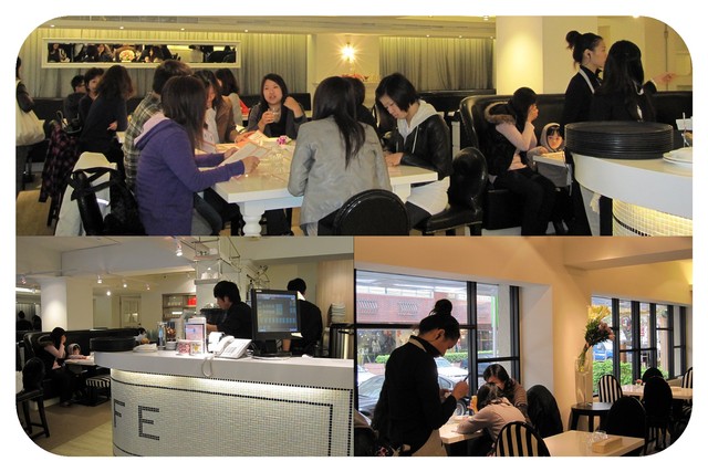 到了dazzling cafe'雖然才中午而且下雨,但是外面還是排了一堆人說,好險我們有先訂位