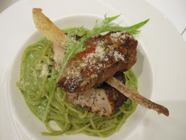 比佛利青醬雞腿麵 這ㄧ道的麵我覺得還好,不過雞腿倒是烤的好好吃喔,外皮酥脆,讚啦