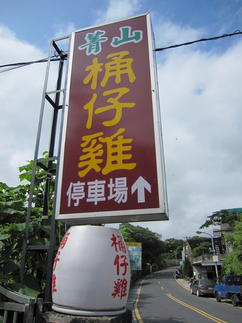 今天的任務完成之後,天天就說要吃桶子雞,跟小朋友一樣,我們找了一家在通往菁山遊憩區的馬路旁