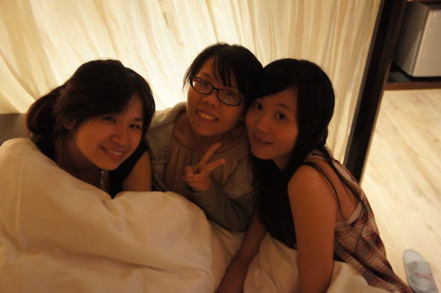 大家真的很克難,玩到3點多才上床睡覺又睡的很擠