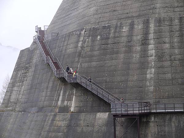 黑部水壩的休息區超大的而且要上去休息區要走這麼多階梯