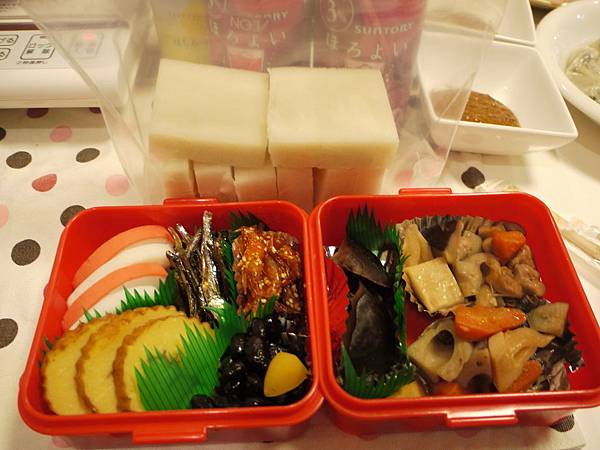 還有讓我很開心又意外的是隔壁阿姨竟然準備了年菜跟麻糬給我們