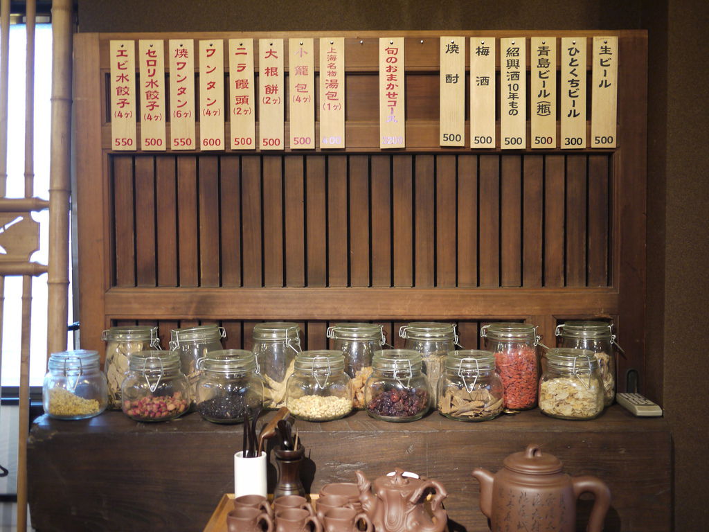 放了一瓶瓶小巧可愛的中藥材還有花茶增添了不少食欲