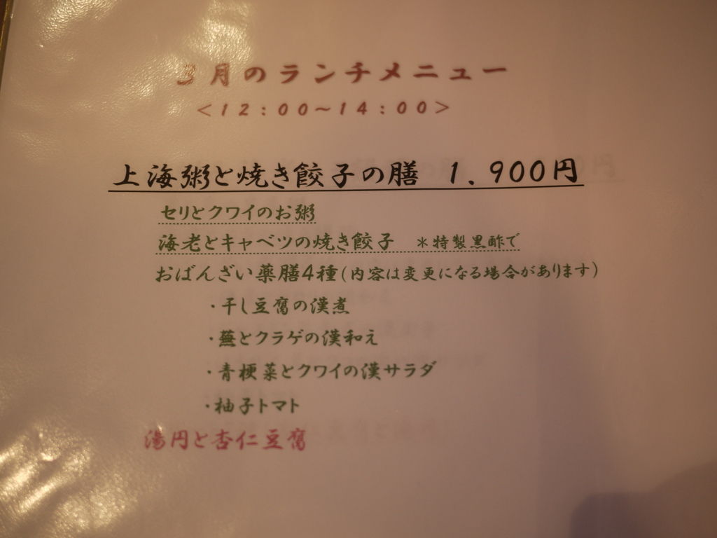 3月的中餐套餐有三種 兩種1900円 一種2800円