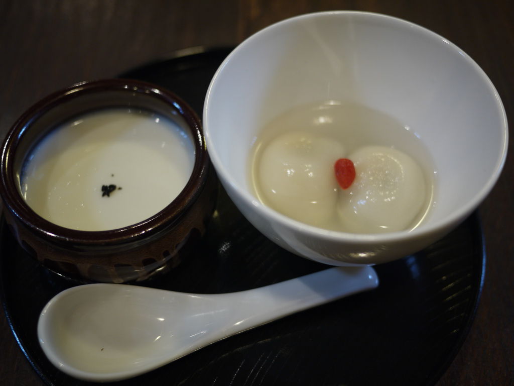 吃完了這些料理後最後上湯圓跟杏仁豆腐