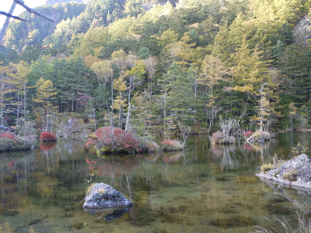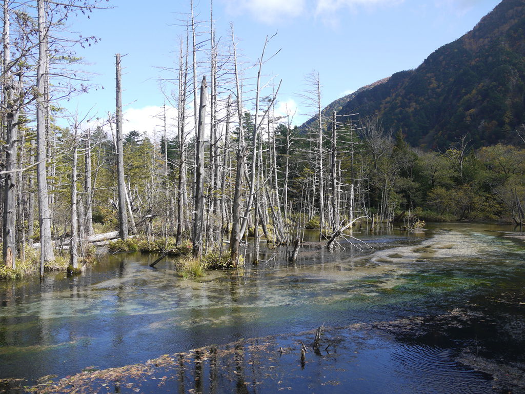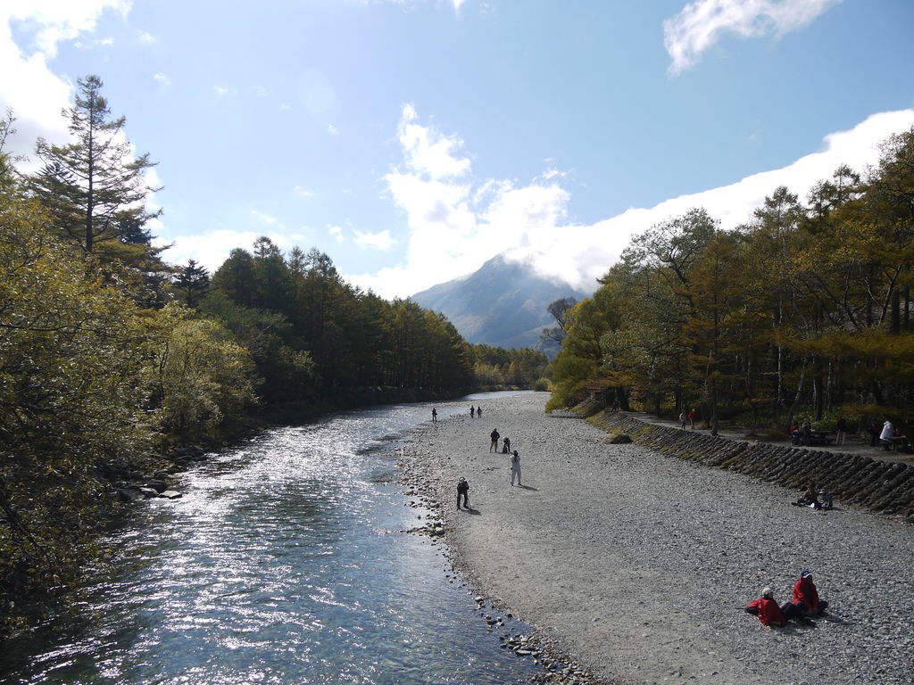 上高地是由好幾座山岳包圍由梓川貫穿明神池.大正池.田代池的盆地